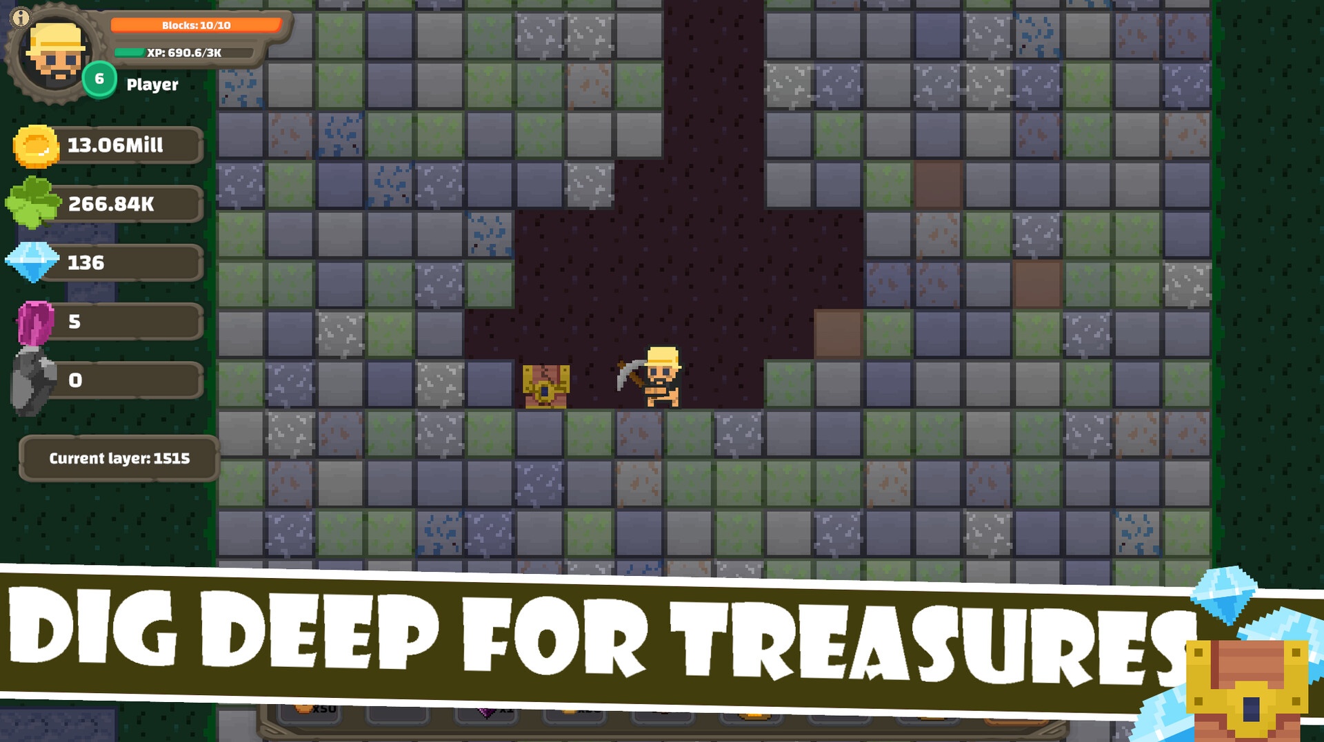 Добывайте, сражайтесь с монстрами, улучшайте свое снаряжение, добывайте редкие предметы, разблокируйте новые способности и добывайте еще немного в масштабном продолжении популярной игры "Haste-Miner 2". Eternamine предлагает непринужденный, но увлекательный игровой процесс, расширяйте свою горнодобывающую империю и открывайте секреты, которые лежат под землей.