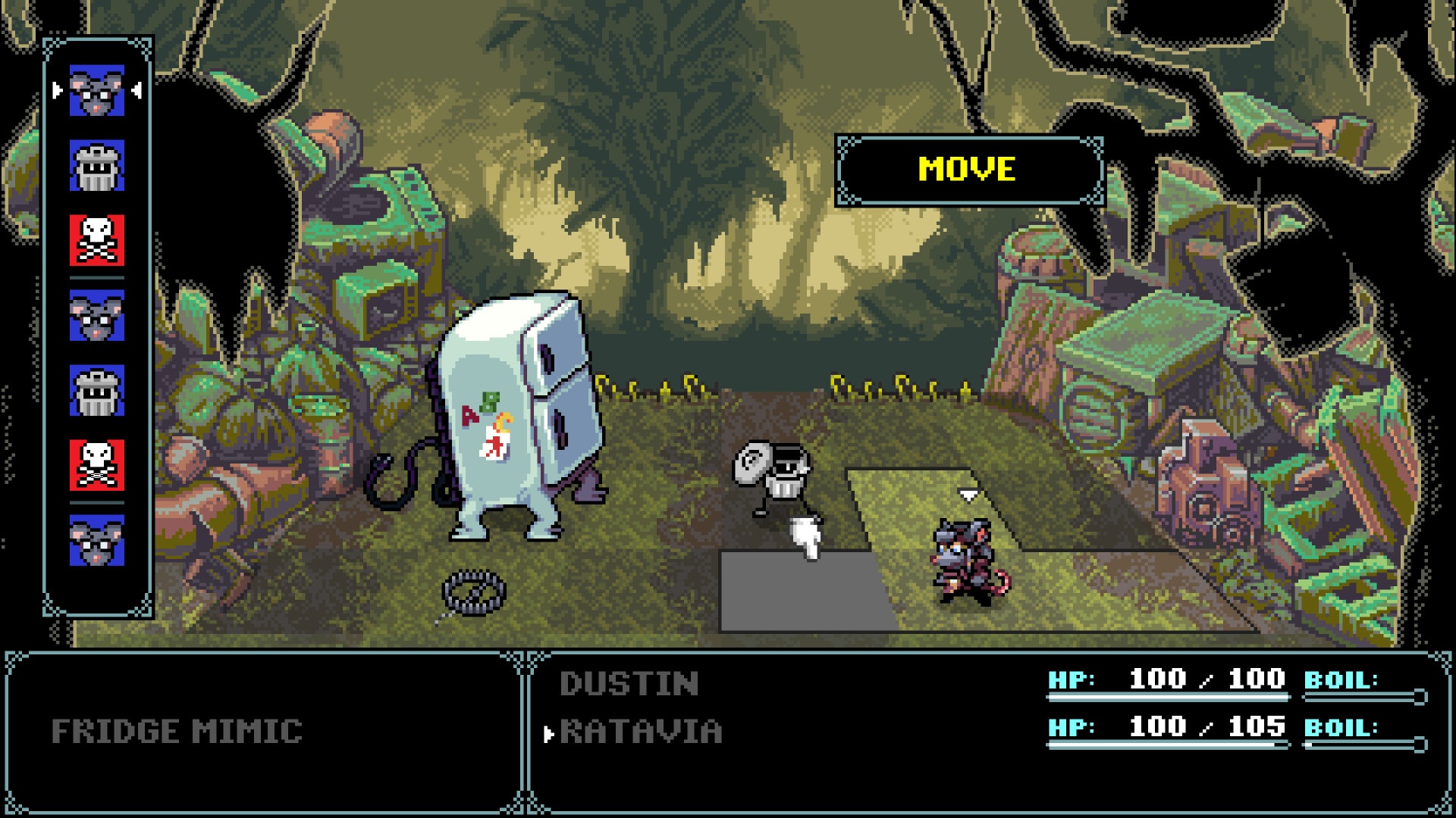 JRPG в стиле SNES, действие которой разворачивается в фантастическом мире мусора, созданном двумя уборщиками. Присоединяйтесь к рыцарю мусорных баков Дастину Бинсли, который прокладывает себе путь через Пять с половиной королевств Свалки!
